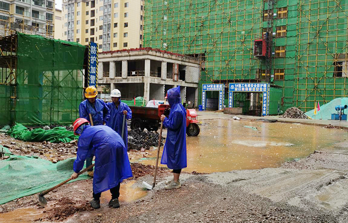 現(xiàn)場因為下大雨,施工人員還沒有到,項目經(jīng)理帶頭走在前面跟他們交待著,隨后只見我們的項目副經(jīng)理小全子拿起鋤頭就在一座集水井前開始挖,他們從旁邊挖出一個小溝,把水引流到集水井里面。雨越下越大,打著傘的我,鞋子、褲子都濕了,但我們的項目施工管理人員并沒有去安全通道躲雨,而是繼續(xù)往前走,看哪里積水多,就在哪里挖引流溝,我問他們:“這么大的雨,等下雨停了再來挖嘛,這樣等下都搞生病了”,他們笑著回復(fù)我:“如果再不挖,等下雨下大了,水越積越多,流到施工電梯基坑里面就麻煩了,雨太大了,你來這干嘛,趕緊回去”,這席話聽了暖暖的。