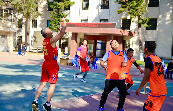 一個(gè)籃球,一場(chǎng)球賽。這場(chǎng)球賽,無(wú)關(guān)乎身份,無(wú)關(guān)乎年齡,更多的是一種和諧,一種愉快的心態(tài)。高高拋起的籃球,點(diǎn)燃了球場(chǎng)上的激情。搶球、斷球、防守、進(jìn)攻;嚴(yán)守應(yīng)對(duì)、激烈爭(zhēng)奪、默契傳球、完美配合,不時(shí)贏得了場(chǎng)下觀眾們的陣陣喝彩。