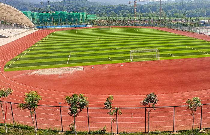 熱帶雨林的螞蟻也很熱情,剛進(jìn)場(chǎng)時(shí),測(cè)量員在茂密的草叢穿梭找點(diǎn),晚上下班回來時(shí)能擦完一整瓶藥膏。后來,在20多臺(tái)機(jī)械和100多名管理人員及工人的奮戰(zhàn)下,茂密的草叢變成一條條明亮的道路。看,已經(jīng)到了運(yùn)動(dòng)健兒們最喜歡的地方,國際運(yùn)動(dòng)比賽水平的400米足球場(chǎng),硅膠籃球場(chǎng),為這個(gè)新建的校區(qū)增添了勃勃生機(jī)。