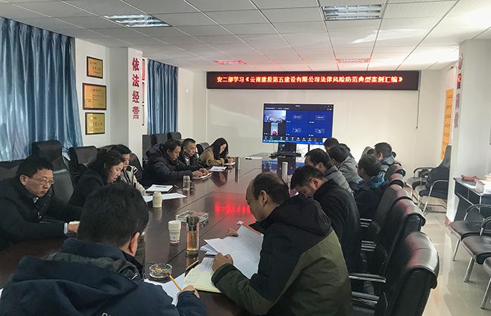 11月30日,安二黨支部組織黨員、在昆職工在直管部會議室集中學(xué)習(xí)《云南建投第五建設(shè)有限公司法律風(fēng)險防范典型案例匯編》,共18人參與學(xué)習(xí)。
