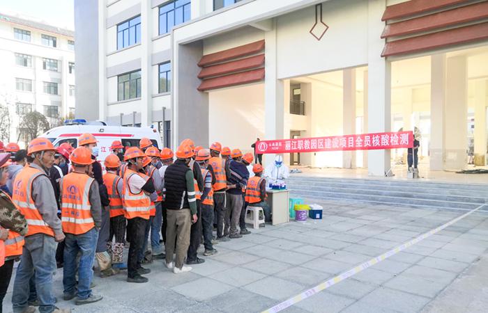 在此過(guò)程中,麗江職教園區(qū)項(xiàng)目部積極組織管理人員、在場(chǎng)施工工人和項(xiàng)目部后勤人員共251人進(jìn)行核酸采集,工人們井然有序地排隊(duì)配合醫(yī)護(hù)人員進(jìn)行核酸采集。