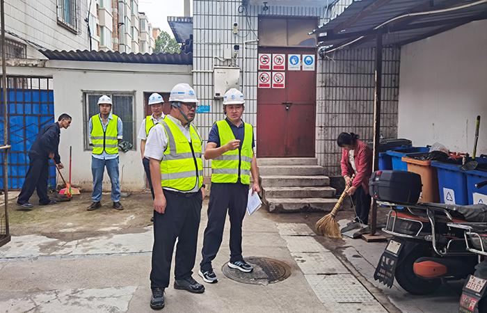 在兩處家屬區(qū),蔣璽詳細(xì)了解小區(qū)的住戶情況,物業(yè)人員和防汛設(shè)備配置情況,實(shí)地檢查了環(huán)境衛(wèi)生、配電房、滅火器等。