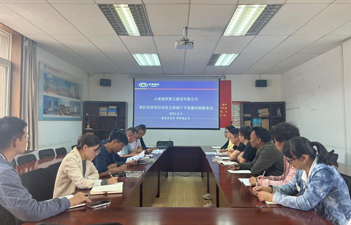 6月6日上午,第四直管項(xiàng)目部黨支部開(kāi)展端午節(jié)前廉潔提醒談話,直管部領(lǐng)導(dǎo)班子、科室負(fù)責(zé)人及在昆職工共計(jì)16人參加會(huì)議。
