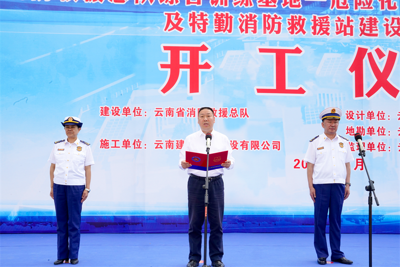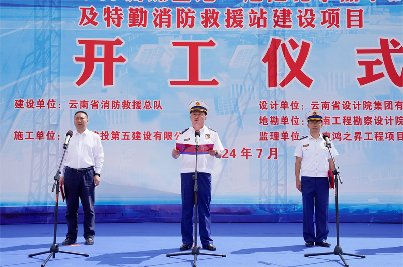 云南省消防救援總隊黨委副書記、總隊長馬濤,黨委書記、政治委員王星,集團公司黨委書記、董事長陳祖軍,云南省消防救援總隊黨委委員、副總隊長楊瑞新、鞏向海,云南省設計院集團有限公司副總經理普柬出席開工儀式。儀式由馬濤主持。