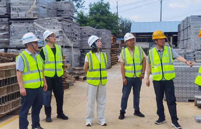楊潔一行深入現(xiàn)場(chǎng),詳細(xì)了解集采中心??诨仨?xiàng)目的資產(chǎn)狀況,查看了項(xiàng)目材料堆碼、防汛、消防、臨時(shí)用電以及大型機(jī)械設(shè)備等管理情況。