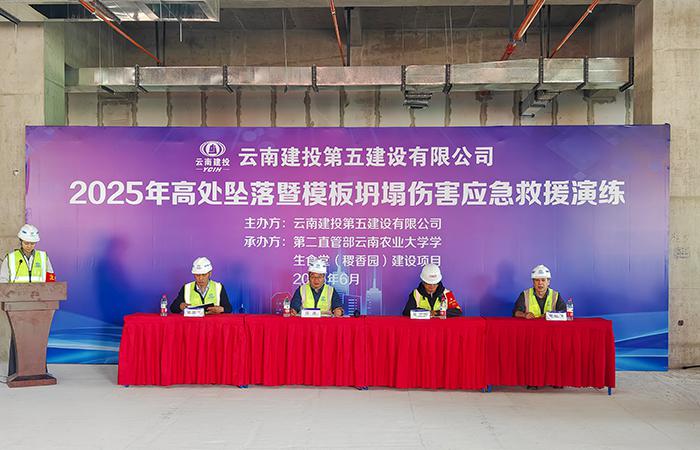 6月27日,公司在第二直管部負(fù)責(zé)施工的云南農(nóng)業(yè)大學(xué)學(xué)生食堂(稷香園)建設(shè)項(xiàng)目開展高處墜落暨模板坍塌傷害應(yīng)急救援演練,同步開展安全標(biāo)準(zhǔn)化工地觀摩交流活動(dòng)。公司副總經(jīng)理匡浩出席活動(dòng)并講話。