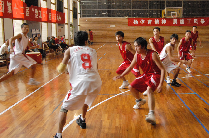 本屆建工杯籃球運動會五公司男籃的最后一場比賽,安排在6月25號上午。由于前幾場在關(guān)鍵場次中未能取勝,這最后一場球的勝負(fù)決定排名第七或者是第八,根據(jù)教練安排,平時上場偏少的6名隊員得到了奮力一搏的機會。