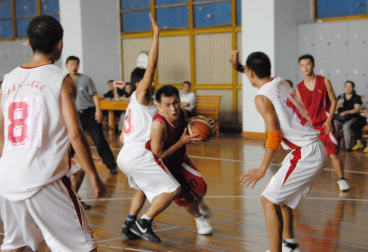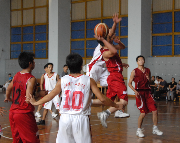 開賽后,他們同心協(xié)力,一度以17比9領(lǐng)先,逼對方換上了主力隊員。雖然此后形勢急轉(zhuǎn)直下,比分被對方反超,但五建上場隊員們?nèi)匀σ愿?,頑強拼搏,絕不放棄. 對方由于有10多名隊員輪換,而五建上場的6名隊員基本無法輪換,可是直到終場,你從他們身上看不到一絲一毫的疲憊,看不到一丁一點的懈怠。雖然觀眾不多,雖然吶喊助威之聲稀少,雖然是到了體力極大消耗之后的下半場,他們依然保持高昂的斗志。無論前場后場,他們都步步緊逼,不放過一個機會、不放棄每個球權(quán),個個全力拼搏,人人都被汗水濕透了全身。雖說最終以幾分之差告負(fù),但是體育的精神,頑強的拼搏,被他們作出了實實在在的演繹。奉獻給觀眾的,是依然精彩的比賽。