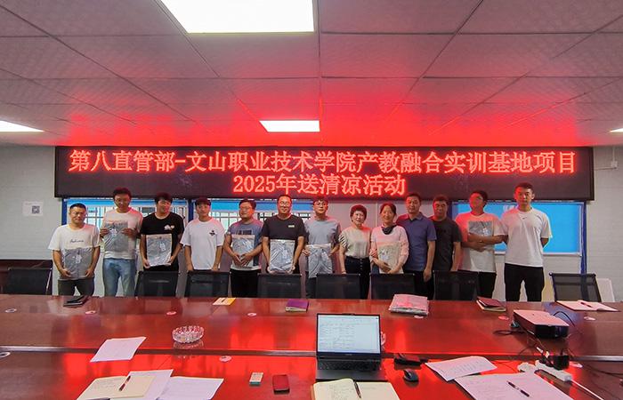 7月18日,第八直管部工會到文山職業(yè)技術學院產教融合實訓基地項目開展2025年送清涼活動,為堅守一線職工發(fā)放了防曬服,送上直管部工會最真摯的關懷?;顒又行麄鹘庾x《云南省總工會關于建立健全幫扶長效機制的意見》文件內容,向參會人員普及《防暑降溫小貼士》知識,提醒廣大職工及產業(yè)工人密切關注天氣變化,做好高溫天氣下生產、生活作業(yè)防暑降溫措施的準備?;顒由咸岢觯皇侵惫懿抗晚椖坎繉⒙搫娱_展工作,加強對項…