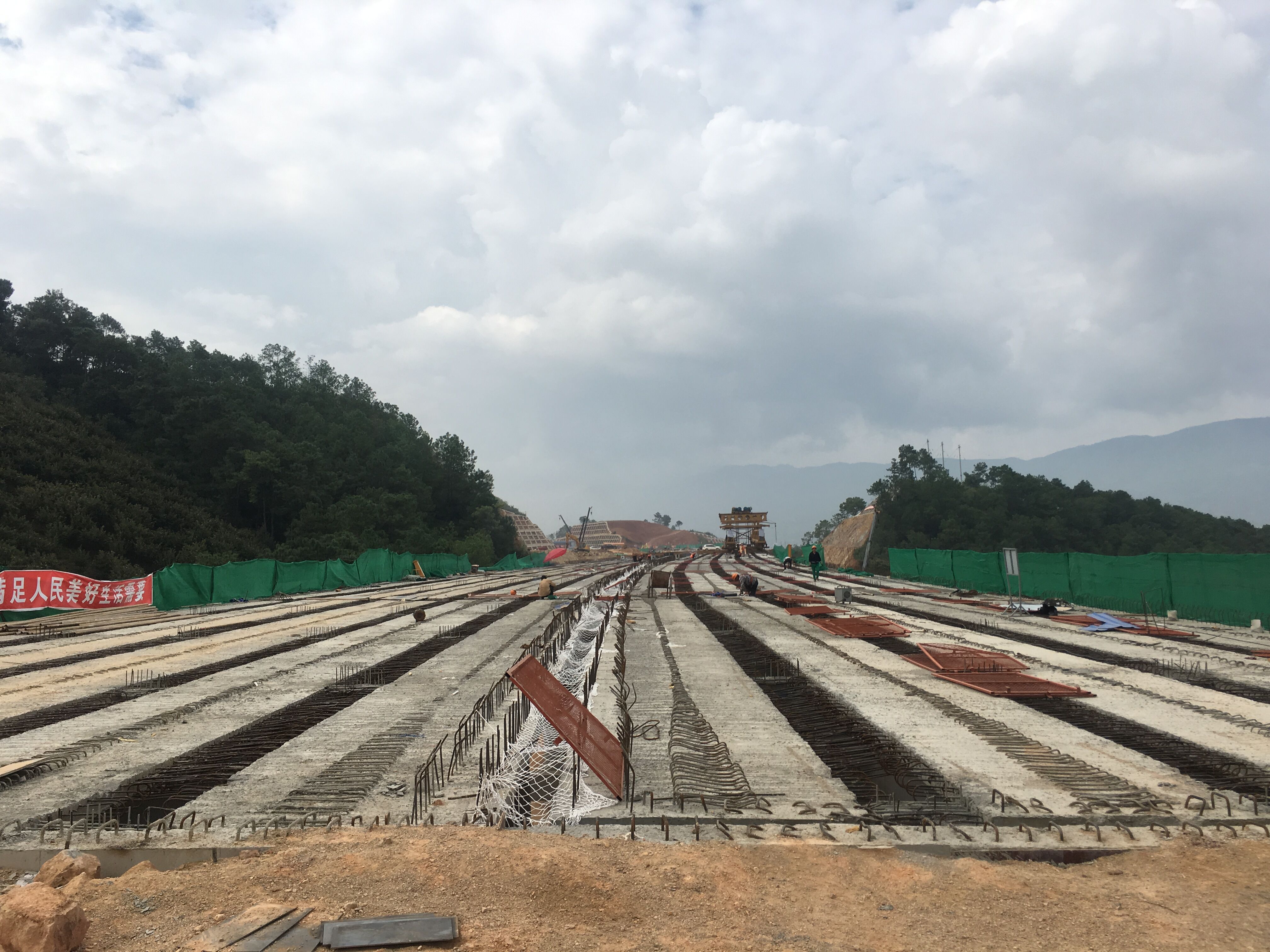 9月24日,彌玉高速公路象山試驗(yàn)段項(xiàng)目部玉屏村3號(hào)大橋右幅8號(hào)墩蓋梁澆筑完成,標(biāo)志著玉屏村3號(hào)大橋首個(gè)預(yù)應(yīng)力蓋梁澆筑成功。 預(yù)應(yīng)力蓋梁,較普通蓋梁相比多了預(yù)應(yīng)力管線的預(yù)埋和預(yù)應(yīng)力筋的張拉,是在蓋梁在承受上部結(jié)構(gòu)及其他荷載之前,通過張拉預(yù)應(yīng)力筋預(yù)先對(duì)其施加一定壓力,使其在外部荷載作用時(shí)的受拉區(qū)混凝土內(nèi)力產(chǎn)生壓應(yīng)力,用以抵消或減小外荷載產(chǎn)生的拉應(yīng)力,使蓋梁在正常使用的情況下不產(chǎn)生裂縫…