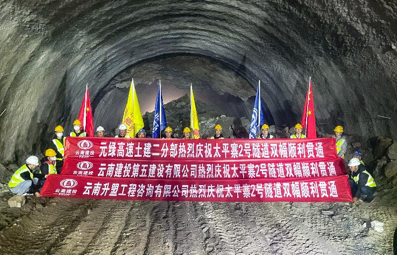 元綠高速公路項目土建二分部太平寨2號隧道雙幅貫通