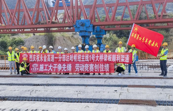 永金高速一分部達(dá)哈樞紐立交主線1號大橋梁板順利架通