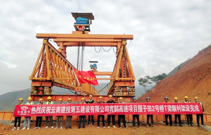 賓鶴高速項目八工區(qū)圍子田2號大橋梁板架設(shè)完成