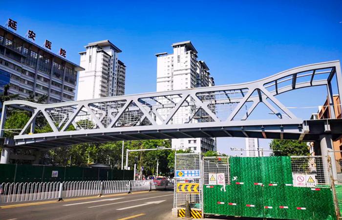 延安醫(yī)院過街人行天橋主梁吊裝完成