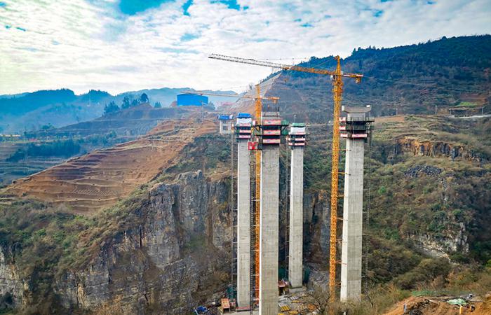 鎮(zhèn)果一級公路三分部五谷大橋高墩左幅2號墩順利封頂