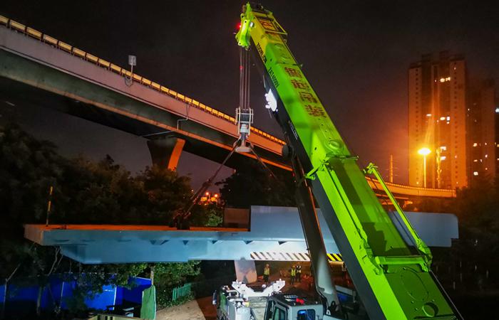 5月25日凌晨六點,在路橋一部負(fù)責(zé)施工的昆明市綜合交通國際樞紐建設(shè)項目附屬工程菊華立交二環(huán)匝道工程施工現(xiàn)場,最后一跨鋼箱梁順利吊裝就位,這也標(biāo)志著項目橋梁主體工程已經(jīng)全部完成,進入了交工通車的全面沖刺階段。本跨鋼箱梁總長度18米,總重量60噸,上跨菊華立交底層環(huán)島主要交通道路,上部凈空受限,吊臂活動空間狹窄,下部人流車流密集,吊裝過程中需要對周邊交通進行疏解。為了保障菊華立交吊裝施工安全,項目部積…