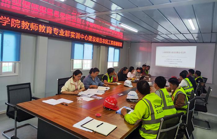 3月14日下午,第十直管項目部在文山學院教師教育專業(yè)群實訓中心建設項目開展農民工實名制管理實施細則交底工作,共計16人參加。會議集中學習了《公司關于印發(fā)農民工實名制及工資支付管理考核實施方案的通知》文件精神,并根據(jù)集團、公司關于農民工實名制相關文件要求進行逐項交底并作解析。會議要求,一是項目部要嚴格遵守實施細則的相關要求,建立健全并完善臺賬資料,充分運用農民工實名制管理系統(tǒng),助推項目各項工作順利推…