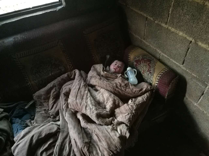 沒(méi)來(lái)得及洗?我的天哪,這衣服還能穿嗎!當(dāng)時(shí)我心里這樣想。這已經(jīng)不能稱之為衣服,用破布來(lái)形容似乎更加恰當(dāng),城市里丟棄的衣服都比這個(gè)要好百倍千倍。5個(gè)月大的女嬰就躺在家中破爛不堪的沙發(fā)上,蓋的被子也是黑黑破破的,她水靈靈的大眼睛看著我們這群陌生人,既不哭也不鬧。同行的女隊(duì)員不禁落淚,因?yàn)樗齻兿胂蟛怀鼍褂羞@樣困難的家庭,這么可憐的孩子。