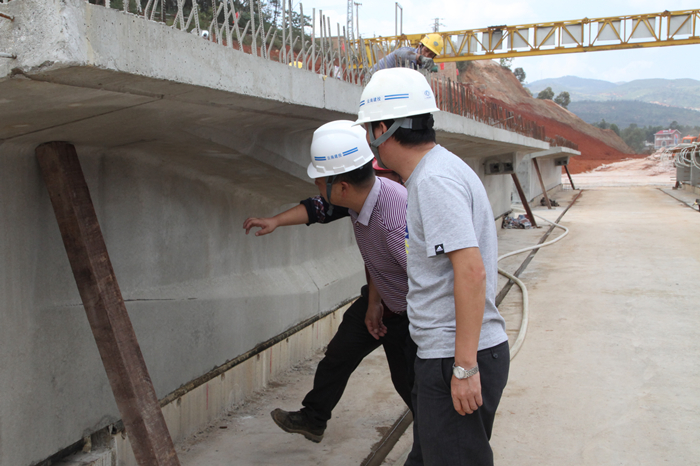 進(jìn)入施工現(xiàn)場(chǎng)后,大家細(xì)細(xì)查看了現(xiàn)場(chǎng)?!澳沁吘妥叩筋^兒過不去了?!痹赥梁養(yǎng)護(hù)場(chǎng),大家走到了最底處,對(duì)每一片梁的情況都有了了解。隨后,大家對(duì)各個(gè)工段都進(jìn)行了查看,人材機(jī)配置大家都在心里默記著數(shù),并拿出手機(jī)不停記錄現(xiàn)場(chǎng)情況。