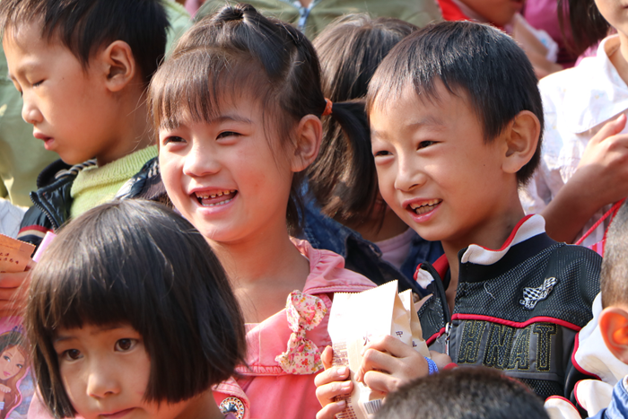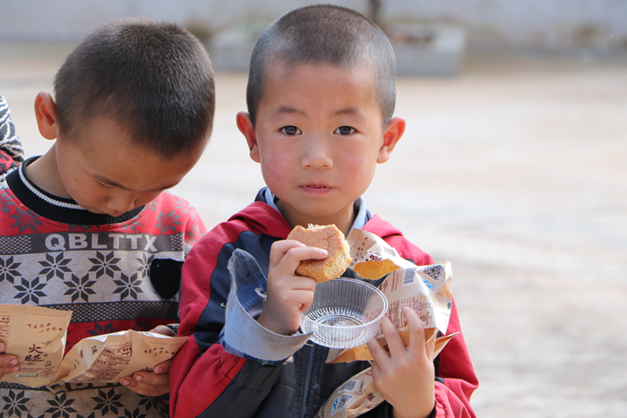 當(dāng)我們把月餅送到孩子們手中時(shí),有的孩子忍不住現(xiàn)場(chǎng)品嘗起美味的月餅來,有的孩子則拿著月餅左瞧瞧、右看看,舍不得吃掉。“小朋友,你怎么不吃呢?”“我要給我妹妹帶回去,媽媽生病了,爸爸在外打工掙錢,我們家沒買過這種粑粑吃。”小男孩面對(duì)我們一點(diǎn)也不害羞,而是一本正經(jīng)地講述著自己不吃月餅的“小秘密”。