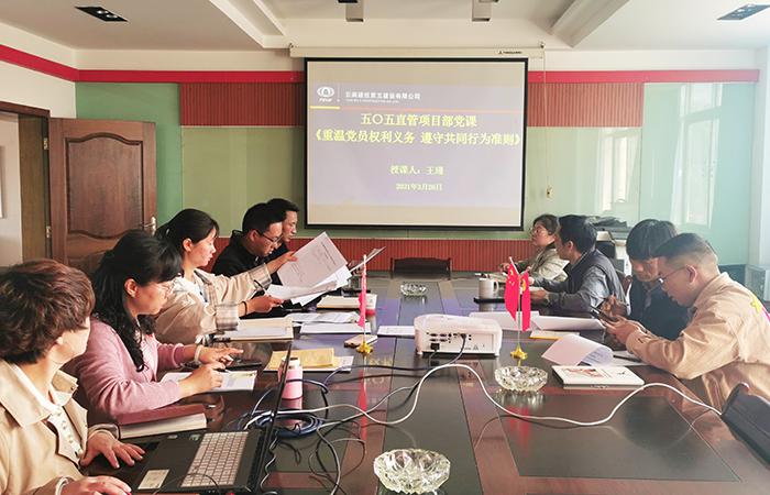 3月25日下午,五〇五直管部黨支部書記王瑾以《重溫黨員權利義務,遵守共同行為準則》為題,開展主題黨課學習活動,直管部全體黨員參與學習。