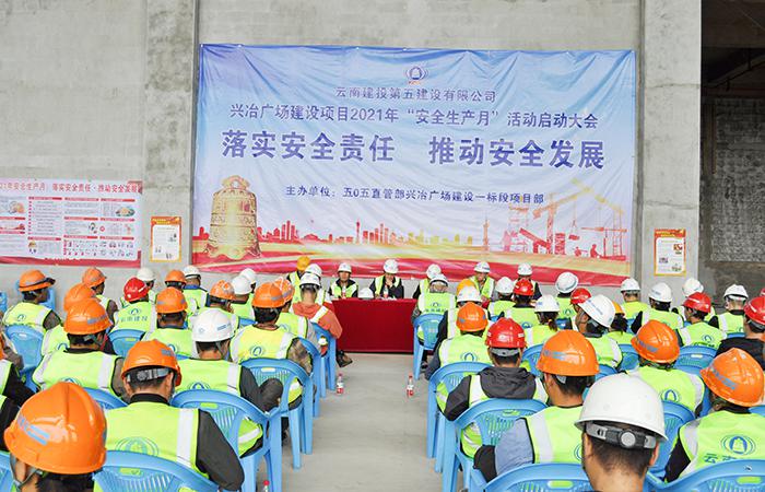 6月11日上午,興冶廣場建設(shè)項目一標段現(xiàn)場,伴隨著“落實安全責任,推動安全發(fā)展……”的洪亮宣誓聲,五〇五直管項目部2021年安全生產(chǎn)月活動正式開始。