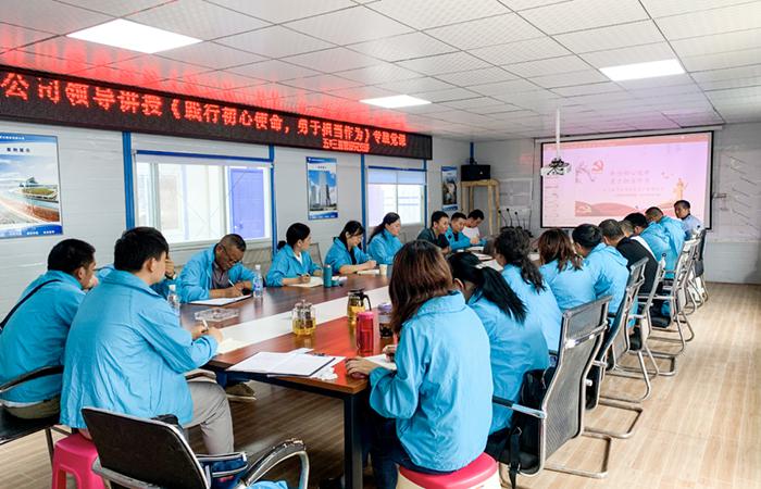 楊永以《踐行初心使命 勇于擔(dān)當(dāng)作為》為主題,分別從中國共產(chǎn)黨人的初心和使命、踐行初心使命講奉獻有作為、把責(zé)任擔(dān)當(dāng)與奉獻落實到項目生產(chǎn)管理工作中等三個方面進行講解。楊永宣貫了習(xí)近平總書記近期重要講話精神,并圍繞中國共產(chǎn)黨的建立過程、中國共產(chǎn)黨的名稱由來、中國共產(chǎn)黨人的初心和使命,以及自身體會和感悟,講授了一堂生動的黨課。