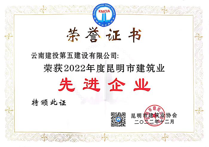 2022年12月8日,昆明市建筑業(yè)協(xié)會召開第八屆理事會換屆選舉會員大會,公司繼續(xù)當(dāng)選為昆明市建筑業(yè)協(xié)會副會長單位,同時榮獲2022年度昆明市建筑業(yè)“先進(jìn)企業(yè)”“質(zhì)量管理優(yōu)秀企業(yè)”“質(zhì)量管理小組活動優(yōu)秀企業(yè)”3項榮譽(yù)。