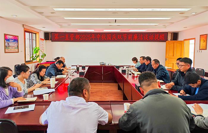 9月30日,第一直管部黨支部開(kāi)展中秋國(guó)慶雙節(jié)前廉潔談話提醒,直管部班子成員、項(xiàng)目經(jīng)理、各科室負(fù)責(zé)人共計(jì)16人參加。