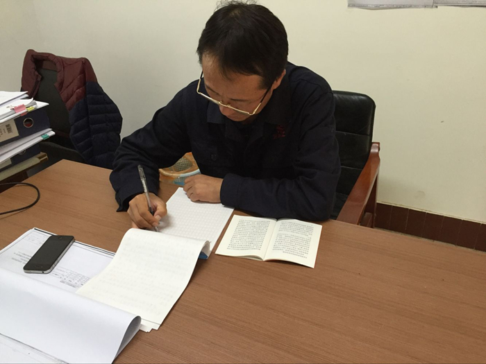 項(xiàng)目部黨員抄寫《黨章》