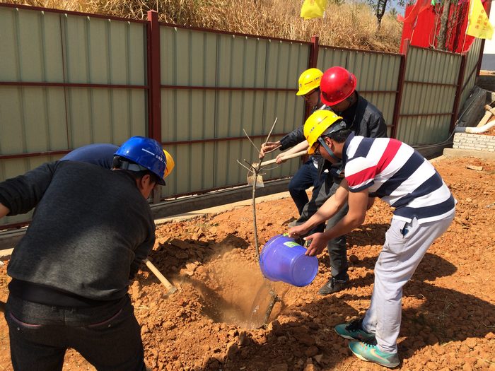 “你挖坑來、我放樹;你埋土來、我澆水”,3月13日,公司香麗項目部三工區(qū)駐地的植樹活動正在熱火朝天地進(jìn)行著。