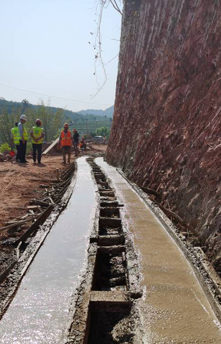 自2020年2月22日復(fù)工后,為確保完成普洱土地開發(fā)投資有限公司下達的各工期目標節(jié)點,項目部根據(jù)該項目點多面廣的特點,從勞務(wù)班組、機械設(shè)備及施工方式等方面進行認真策劃,一是在做好疫情防控的前提下分批次進行復(fù)工,優(yōu)先采用當?shù)毓と?,確保復(fù)工工人滿足項目施工的需求,現(xiàn)共投入工人287人進行路側(cè)溝、水池、斗渠及農(nóng)渠的施工;二是根據(jù)工作面情況增加機械投入,目前共投入116臺挖掘機、20臺推土機、18輛裝載機、15臺中型攪拌機、30輛砼運輸罐車以及30輛自卸汽車;三是采取分鄉(xiāng)鎮(zhèn)和分片區(qū)的方式,合理組織12個施工班組進行平行施工。