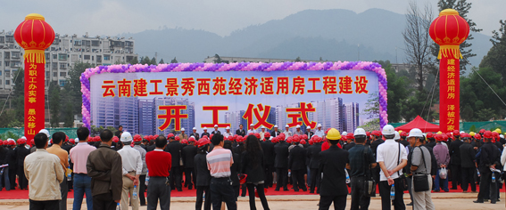 省建設(shè)廳副廳長陳錫誠,省國資委助理巡視員魏民,省市有關(guān)部門領(lǐng)導(dǎo),集團(tuán)總公司黨政領(lǐng)導(dǎo)納杰、寧升功、謝其華、劉勇、后永寧、邱錄軍出席開工儀式。總公司各部室負(fù)責(zé)人和所屬各單位黨政工領(lǐng)導(dǎo)前往祝賀。省國資委助理巡視員魏民、云南建工集團(tuán)董事長、黨委書記納杰和有關(guān)領(lǐng)導(dǎo)為工程開工儀式剪彩??偣究偨?jīng)理,省房地產(chǎn)公司總經(jīng)理李虎春,五公司董事長、黨委書記楊福和在儀式上講話,表示一定要以一流的質(zhì)量、一流的管理,開發(fā)建設(shè)好景秀西苑經(jīng)濟(jì)適用房項目,為集團(tuán)廣大職工解決好住房困難問題。