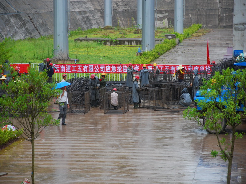 下午,材料到場(chǎng),組織景秀西苑項(xiàng)目部五個(gè)標(biāo)段及外調(diào)鋼筋工通宵制作,遇兩場(chǎng)大雨。晚十點(diǎn),開(kāi)始裝車。