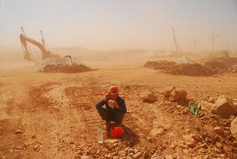 圖為高玉和作品《五公司滾滾紅塵——風(fēng)中的工地》