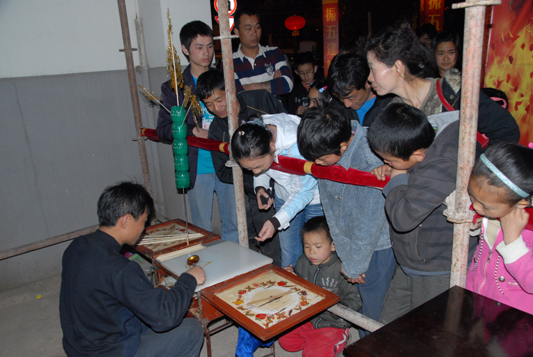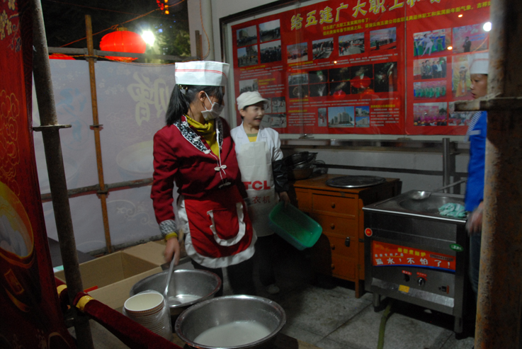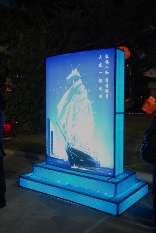 由基層各單位送來的參展作品異彩紛呈。最醒目的是主席臺旁的公司五大標(biāo)志性建筑燈箱,新機(jī)場項(xiàng)目的詩詞是機(jī)場項(xiàng)目部工會主席楊應(yīng)同志所寫的《念奴嬌.新機(jī)場建設(shè)有感》,表現(xiàn)了奮斗在工地上職工們的朝氣蓬勃;506分公司作品是他們自行設(shè)計(jì)的圖案,開頭是4,后面9個0,象征著公司今年要完成40個億的經(jīng)營任務(wù);門上的兩個工藝精美的古典燈籠結(jié)合我們501分公司的一幢幢現(xiàn)代建筑,古樸中透著現(xiàn)代的氣息;第一個獲得魯班金像獎的505直管項(xiàng)目部的送來的作品立體又質(zhì)感;海天一色中揚(yáng)帆的船寓意著家福人和,菊香明月,五建一帆風(fēng)順……各式各樣的彩燈都表達(dá)著對五建公司的美好祝福。兩個集體趣味項(xiàng)目超級大腳板和抬氣球,分別由新機(jī)場項(xiàng)目部、景秀西苑項(xiàng)目部、502直管項(xiàng)目部和507分公司派出的代表隊(duì)參加,團(tuán)隊(duì)的力量一目了然。民間藝人表演的《變臉》、《頂碗》和魔術(shù)《飛桌子》以及劃彩船、騎毛驢等傳統(tǒng)項(xiàng)目吸引了眾多的觀眾。燈謎區(qū)人頭攢動,同時進(jìn)行的還有元宵湯圓和冰糖葫蘆大贈送;民間藝人現(xiàn)場表演了剪紙、草編、畫糖畫、捏面人等節(jié)目,他們的手工作品都現(xiàn)場免費(fèi)贈送給大家。