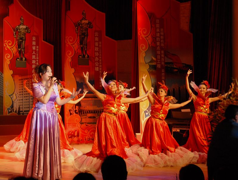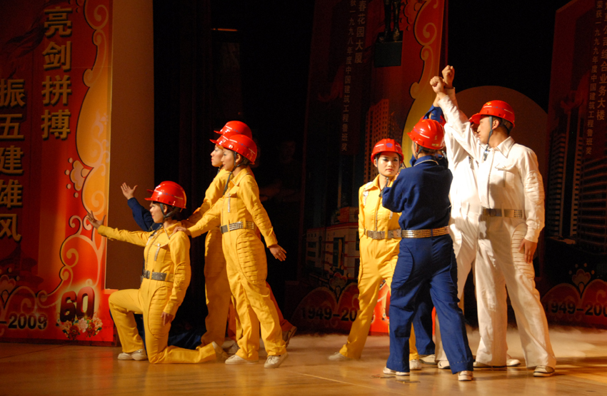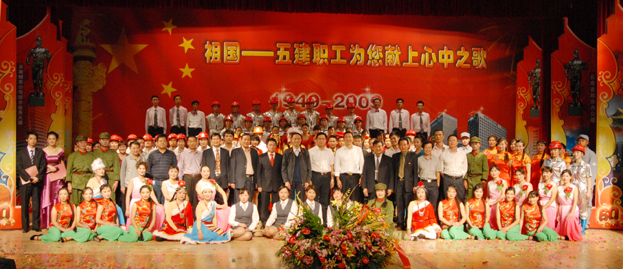 云南建工第五建設(shè)有限公司于9月28日晚在公司禮堂隆重舉辦以《祖國――五建職工為你獻上心中的歌》為主題的文藝晚會,慶祝中華人民共和國建立六十周年。來自公司和基層22個單位的700多 名職工,共演出了19個節(jié)目,以飽滿的熱情祝福偉大的社會主義祖國,用嘹亮的歌聲抒發(fā)對偉大祖國的熱愛,以昂揚的斗志表達實現(xiàn)公司跨越式發(fā)展的決心。云南建工集團總公司董事長、黨委書記納杰,副書記、紀委書記張戰(zhàn)國,工會主席陳文雙,集團前黨委書記張平濤等領(lǐng)導和來自集團內(nèi)外的嘉賓和五建干部職工一起觀看了演出,并和大家一起放聲合唱《歌唱祖國》。