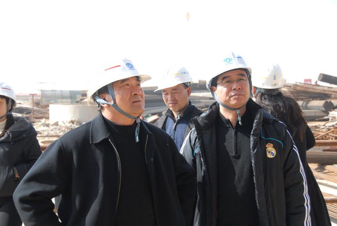 楊福和等公司領(lǐng)導(dǎo)在會(huì)前還到施工現(xiàn)場(chǎng)參觀和了解現(xiàn)場(chǎng)情況。