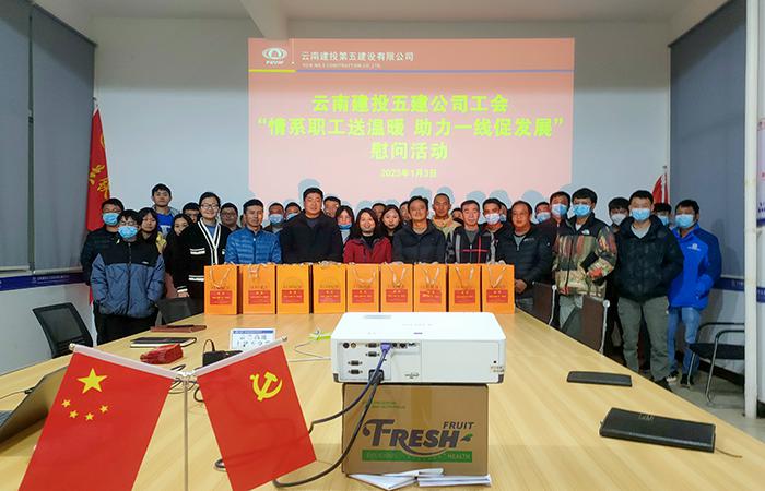 1月4日晚,五〇二直管部工會(huì)到到開遠(yuǎn)市小龍?zhí)赌隙礈细囊乒こ涕_展“情系職工送溫暖 助力一線促發(fā)展”慰問(wèn)活動(dòng),深入基層、深入項(xiàng)目一線,為職工送去直管部的溫暖與關(guān)懷。慰問(wèn)時(shí),直管部書記將毛毯等慰問(wèn)品一一送到同志們的手里,并叮囑大家,一是春節(jié)臨近,時(shí)至寒冬,大家在工作生活中要注意防寒保暖,‘身體是革命的本錢’,你們的健康是我們最大的欣慰。二是年關(guān)將至,大家要守好2022年的最后一關(guān),合理安排年前的施工任務(wù)…