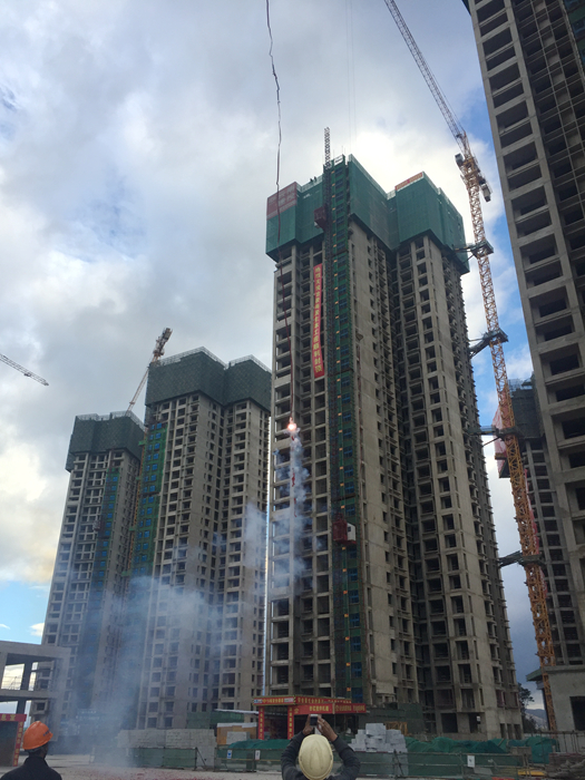 11月8日上午,公司五〇五直管項目部施工的滿江?怡景尚居土建主體工程施工第二標段3棟高層全部順利封頂。 大理滿江?怡景尚居工程為一類高層住宅小區(qū),由3棟33層及一層地下室的住宅及3棟一層商鋪組成,總建筑面積70488平方米,其中3棟主樓面積為58968.72平方米,高度為104.15米。工程合同工期660天,于2015年1...