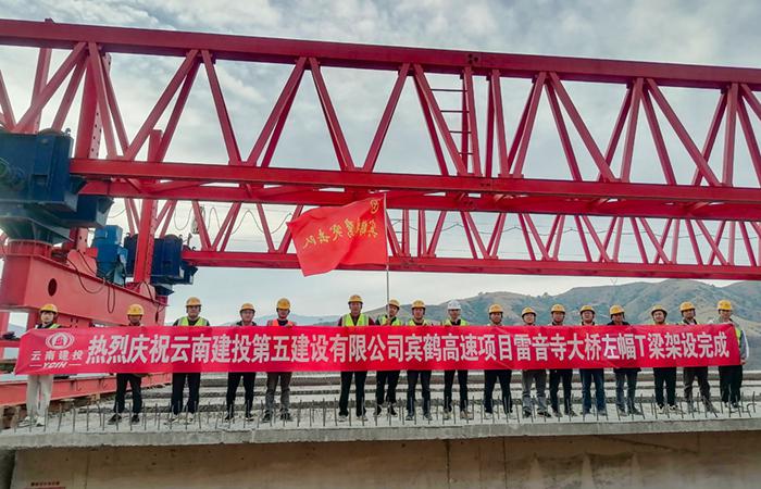 路橋五部賓鶴高速項目雷音寺1#、2#大橋左幅梁板架設(shè)完成