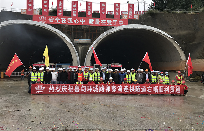 直十魯?shù)榄h(huán)城路卯家灣連拱隧道右幅貫通
