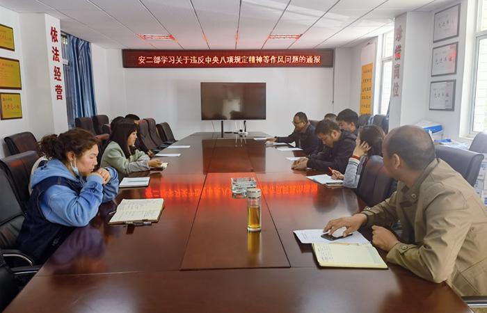 安二部組織學習《關(guān)于違反中央八項規(guī)定精神等作風問題的通報》